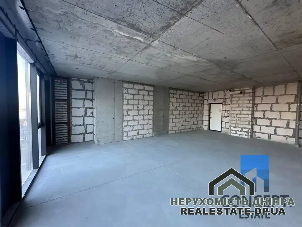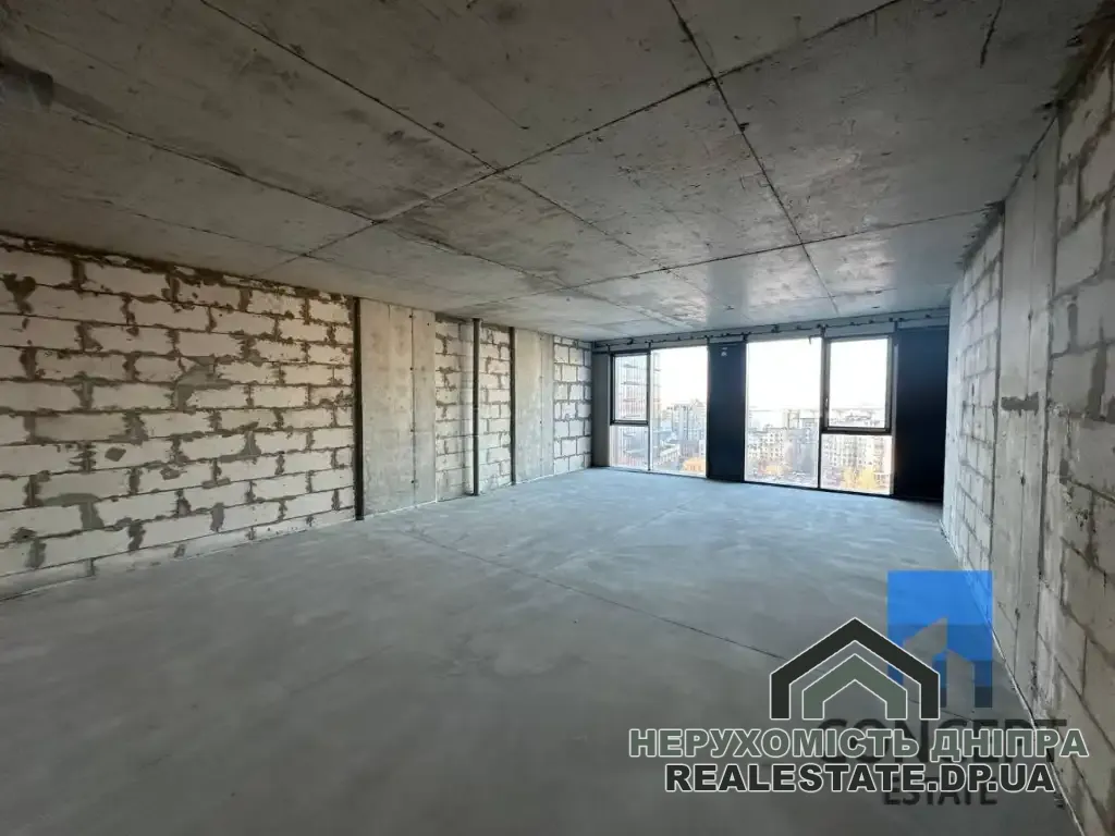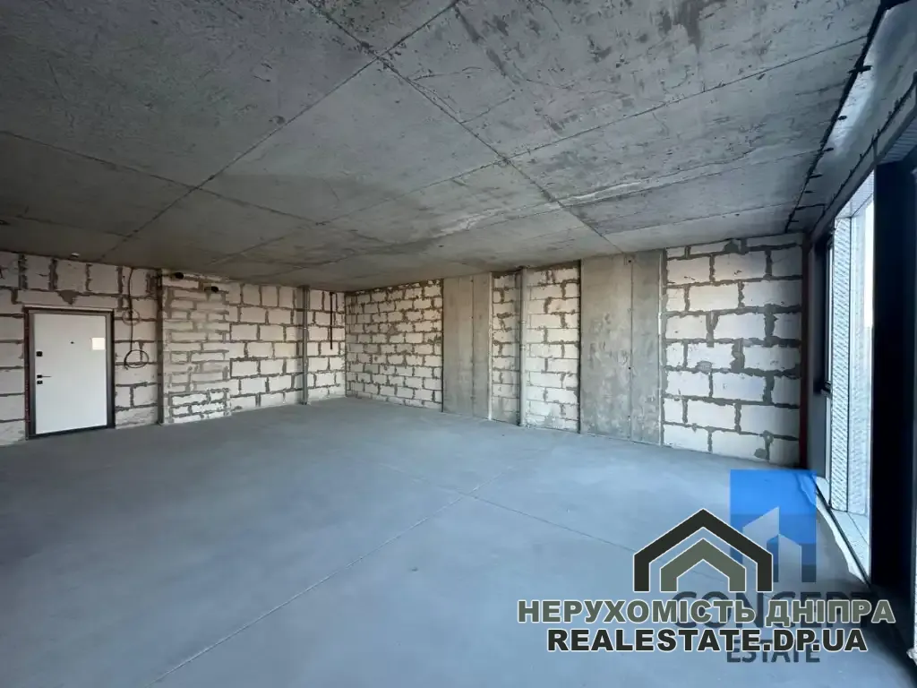 Загальна площа - 58 м², житлова - 40 м², кухня - 18 м². Квартира продається без внутрішнього оздоблення.