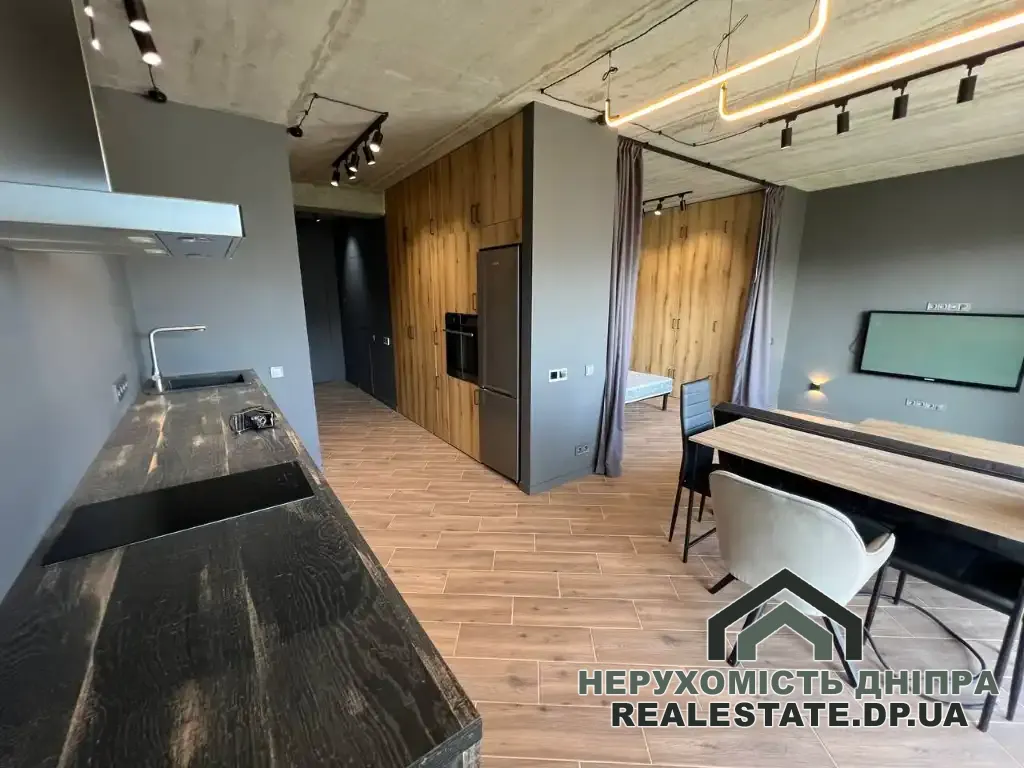 Квартира виконана в стильному дизайні лофт з євроремонтом. По всій площі встановлено теплу підлогу для максимального комфорту.