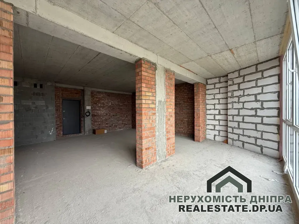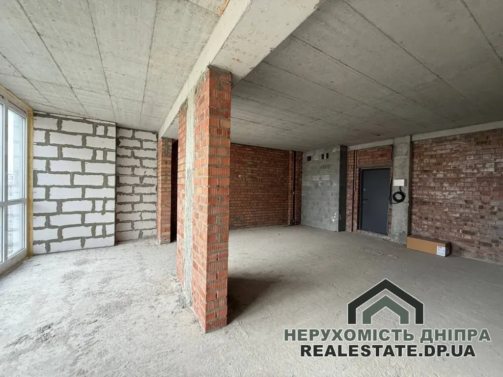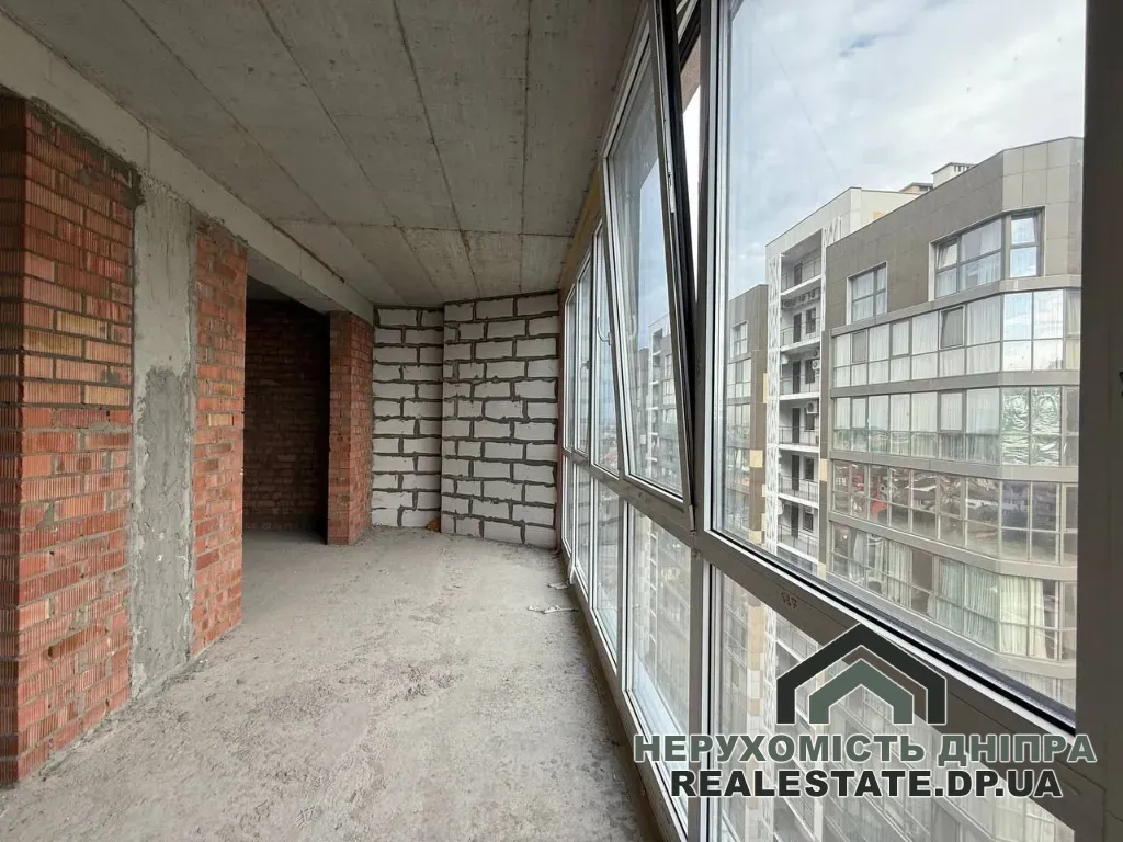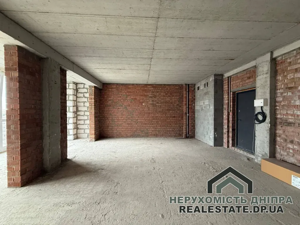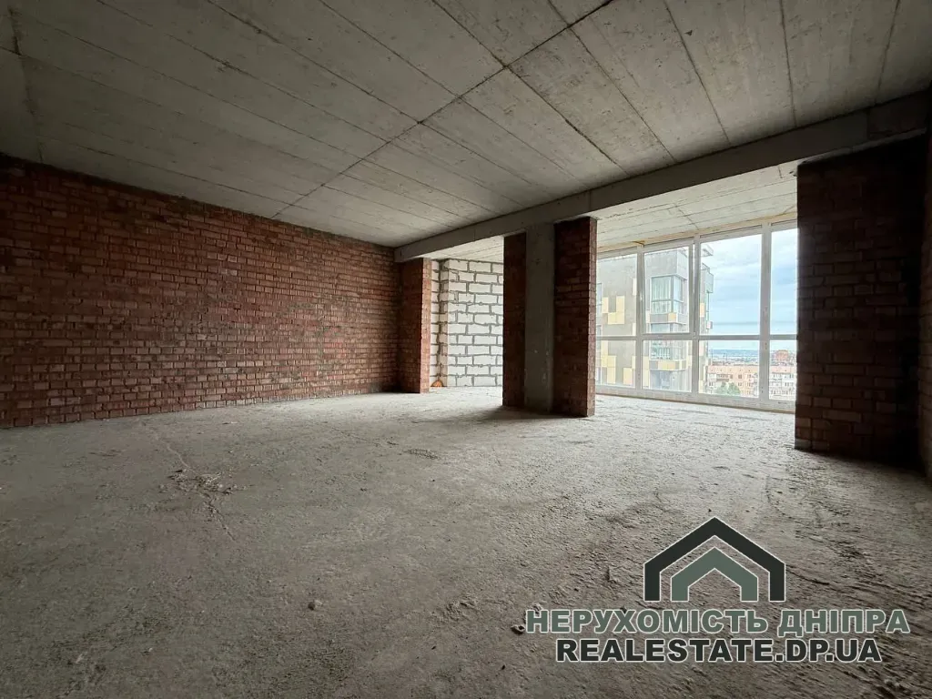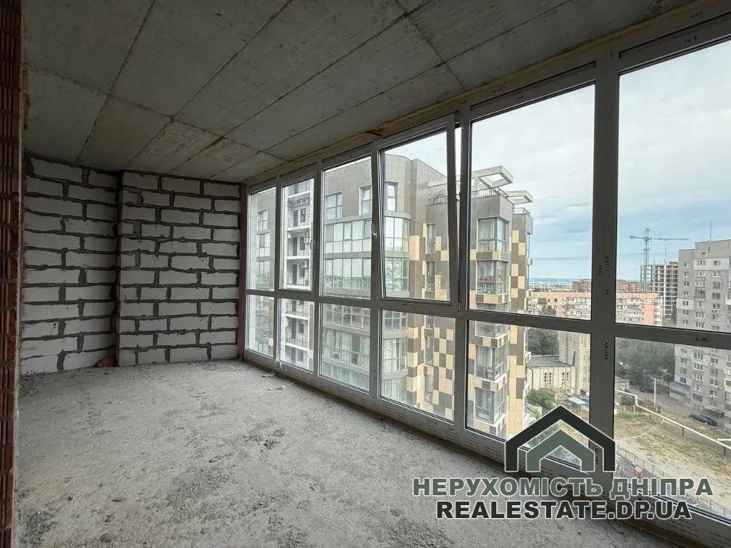 Квартира без ремонту, з можливістю створення інтер'єру за власним бажанням. Планування вільне, висота стель — 3 м. Панорамні вікна забезпечують багато денного світла.
