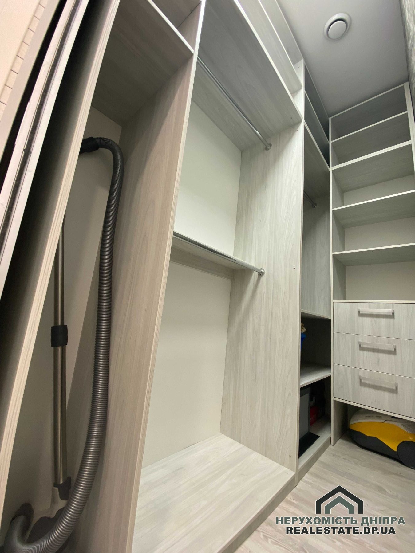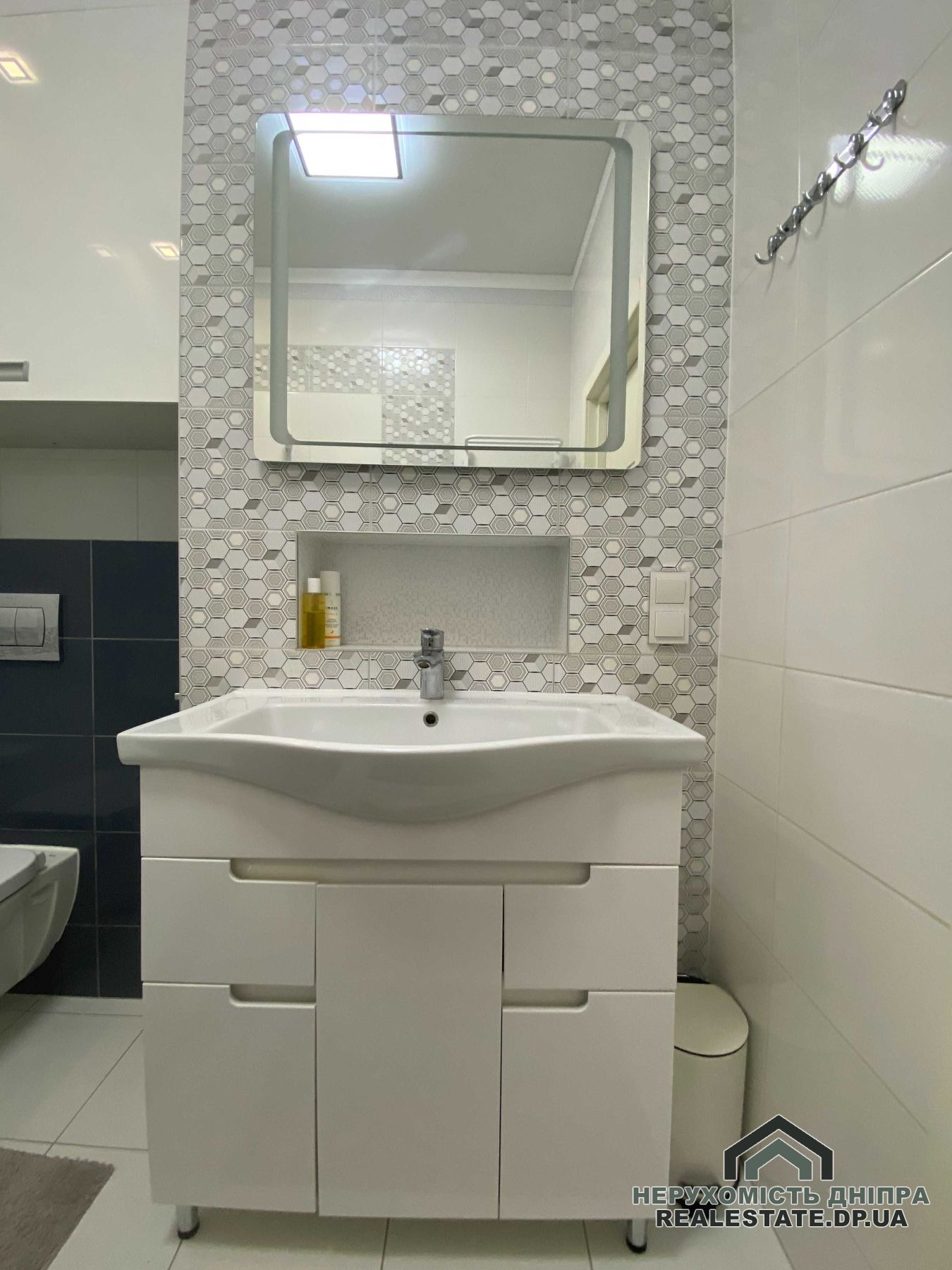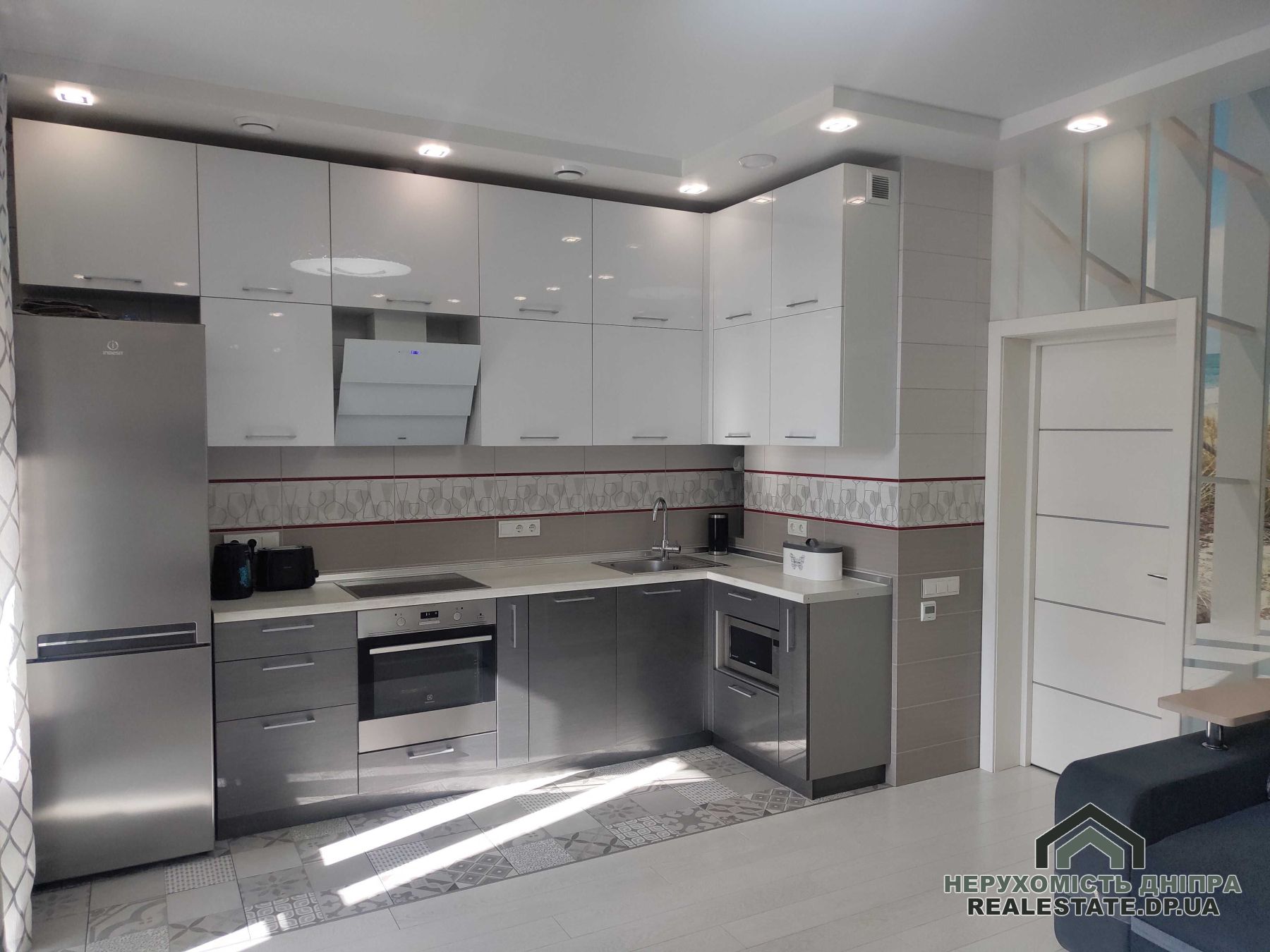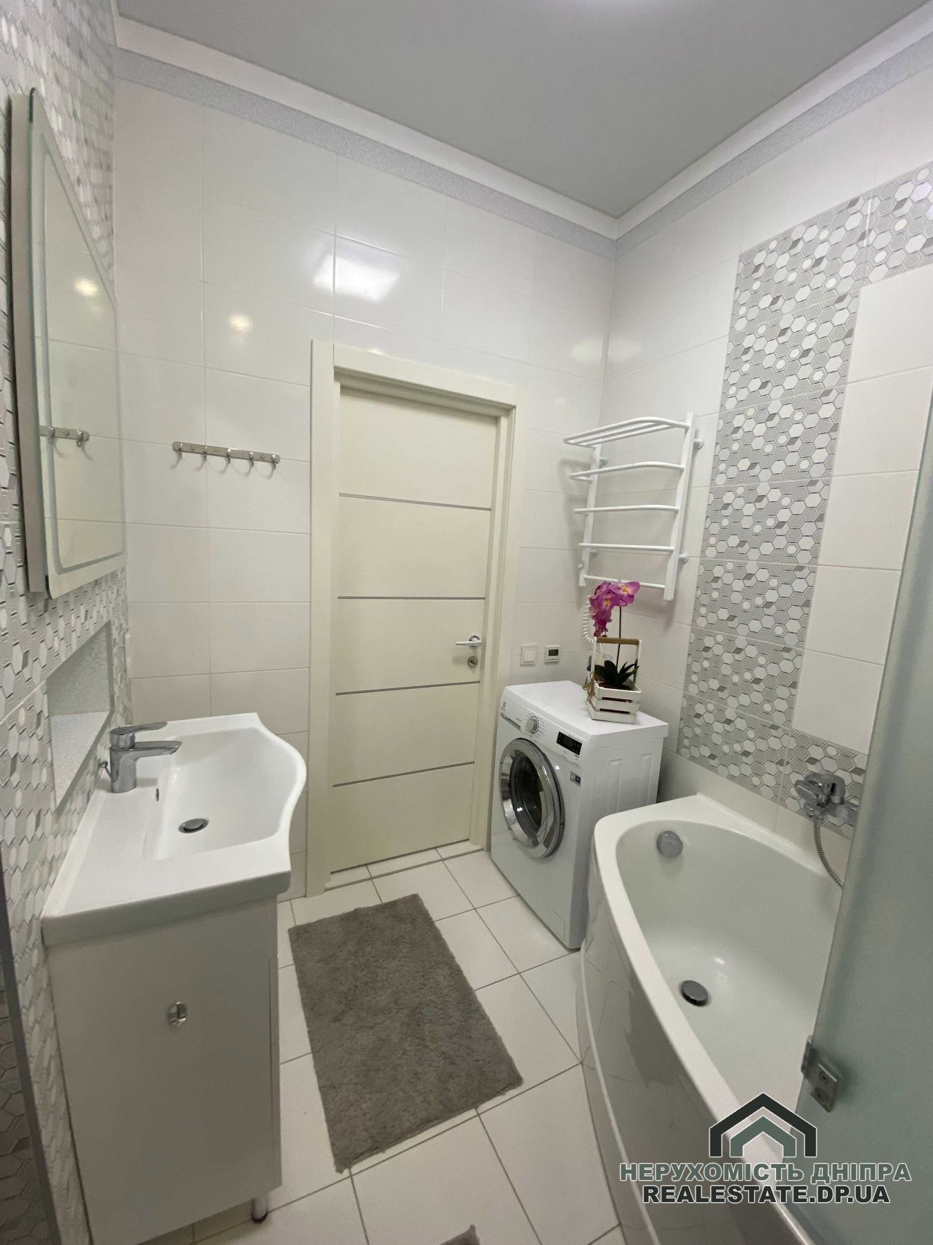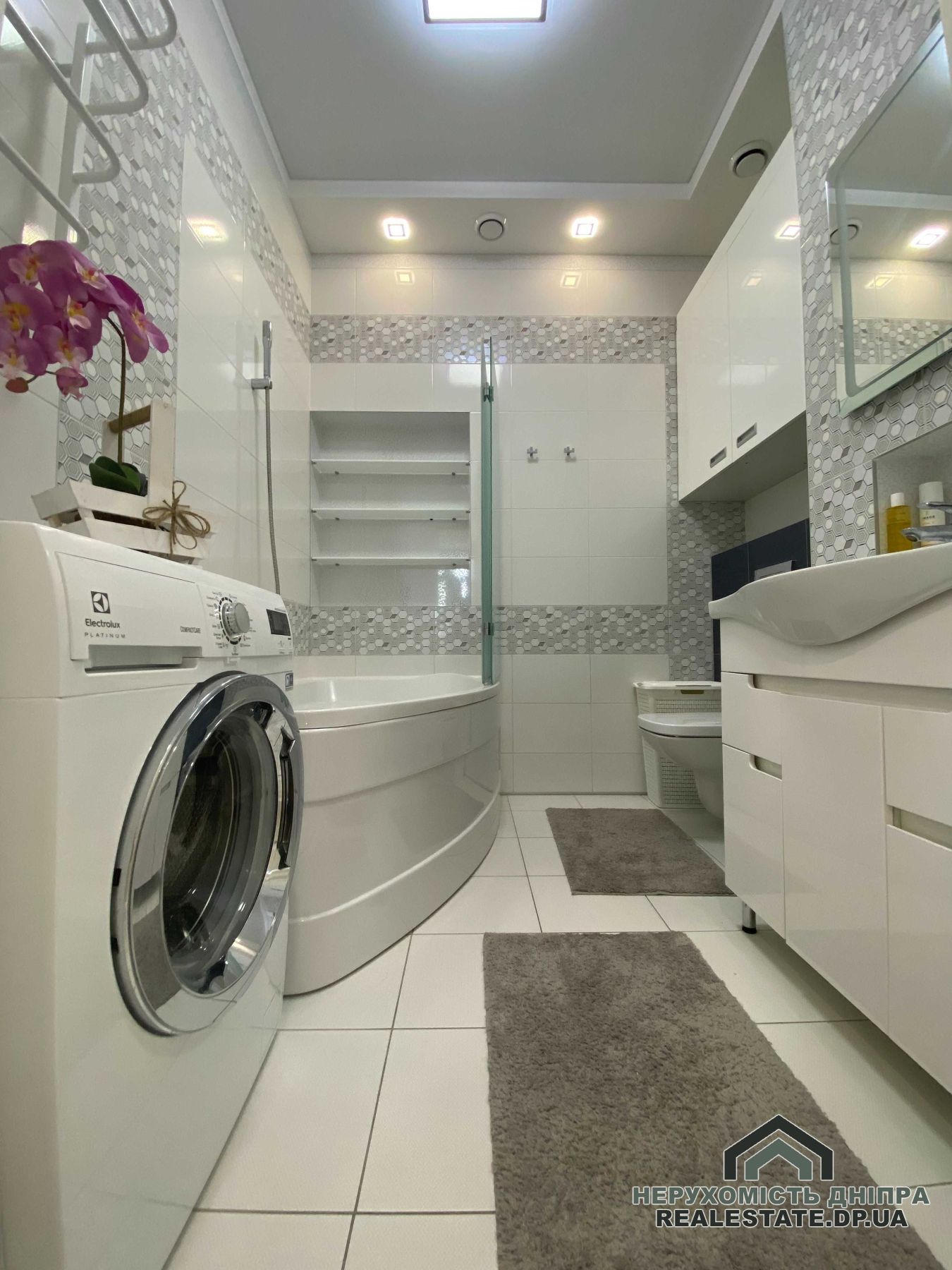 Продається двокімнатна квартира в житловому комплексі бізнес-класу IQ-House. Розташована на 4-му поверсі 20-поверхового будинку, є два ліфти. Загальна площа складає 60 м²: кухня-студія, спальня/дитяча кімната, ванна кімната, гардеробна, дві лоджії (відкрита й закрита). Висота стель – 3 метри.