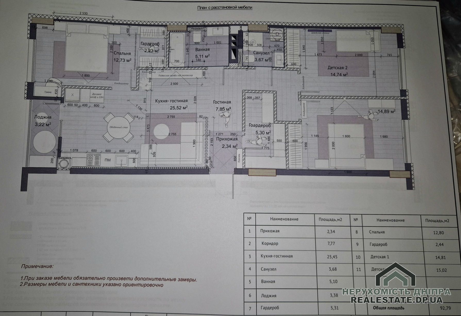 - Планування: кухня-вітальня, три окремі спальні, два санвузли, гардеробна й лоджія.