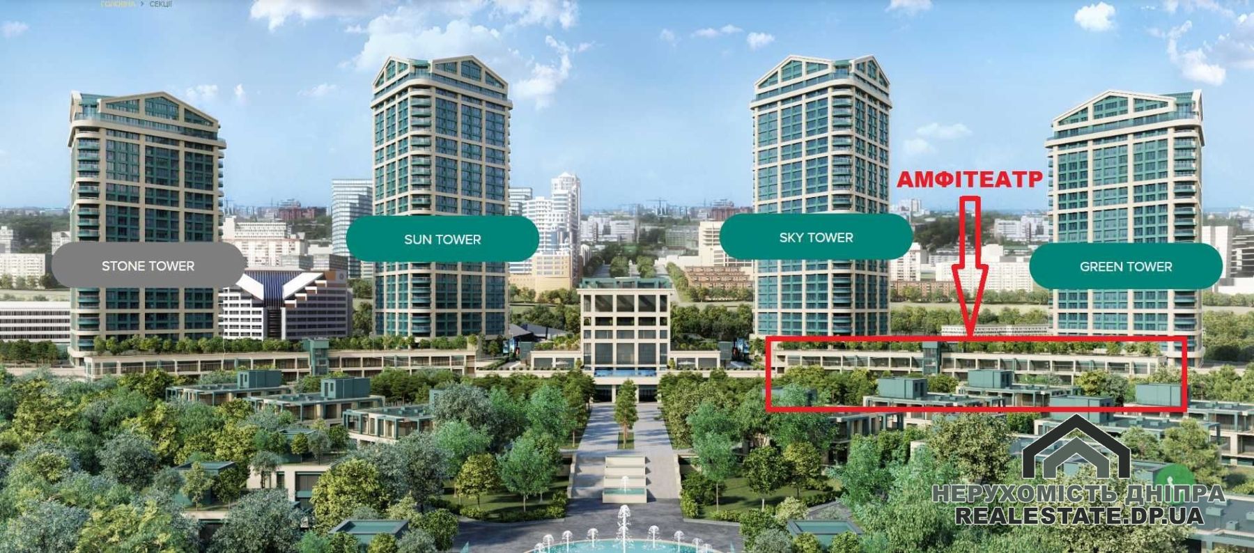 Особливості комплексу: амфітеатр з клубним форматом, що включає лише 18 квартир (по 9 на кожному з 2-х житлових поверхів).