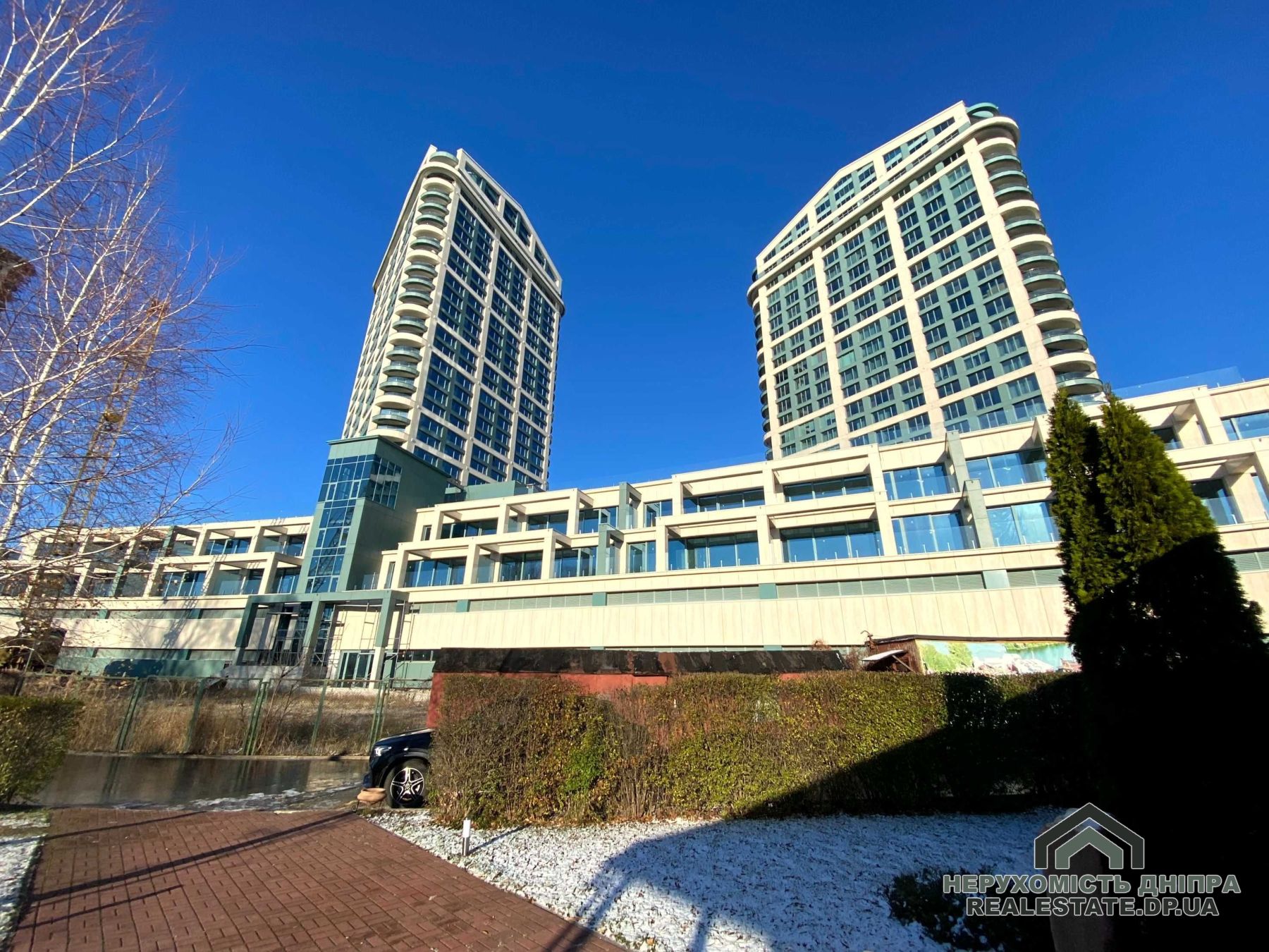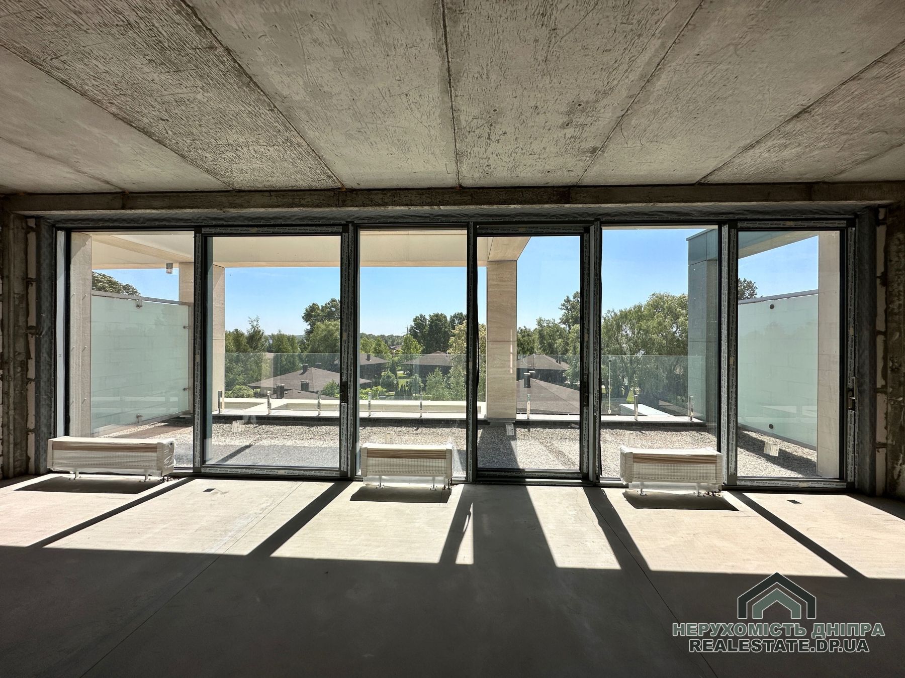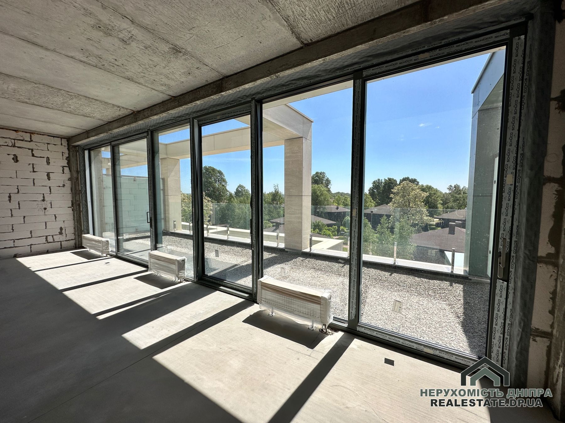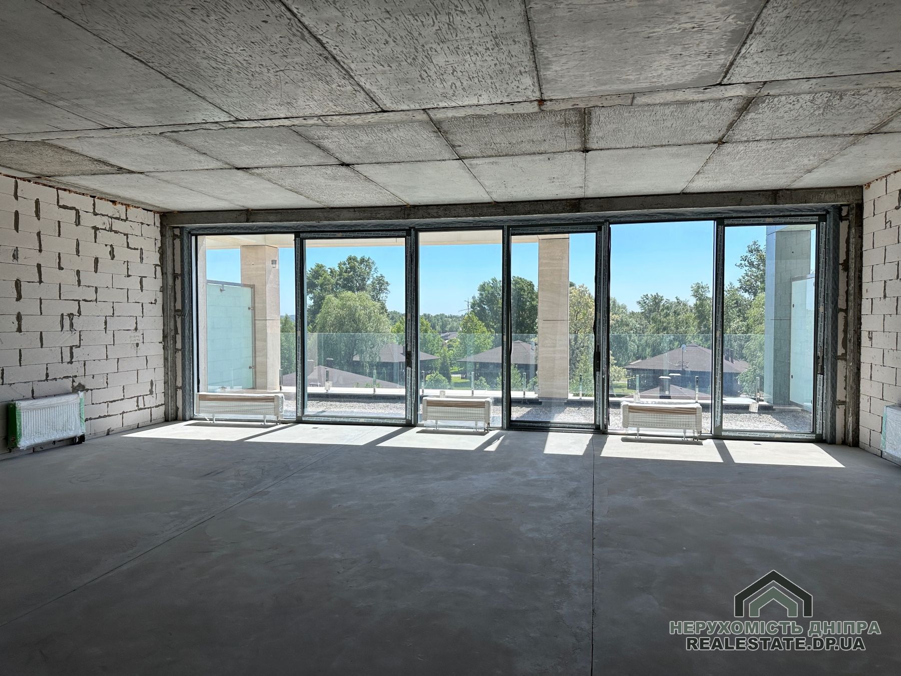 Панорамні розсувні вікна від Schüco відкривають види на парк та Дніпро. Життя у цьому ЖК дарує максимальний комфорт без потреби доглядати за територією чи будинком. Менше сусідів створює додатковий затишок.
