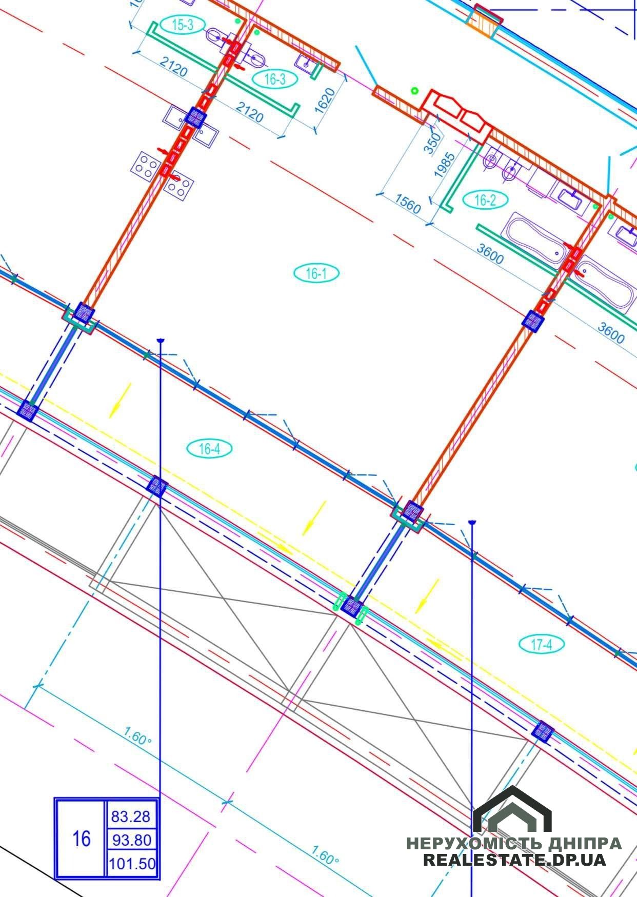 Загальна площа квартири становить 119,50 м², з яких 93,8 м² — внутрішні приміщення, а площа кухні складає 14 м².