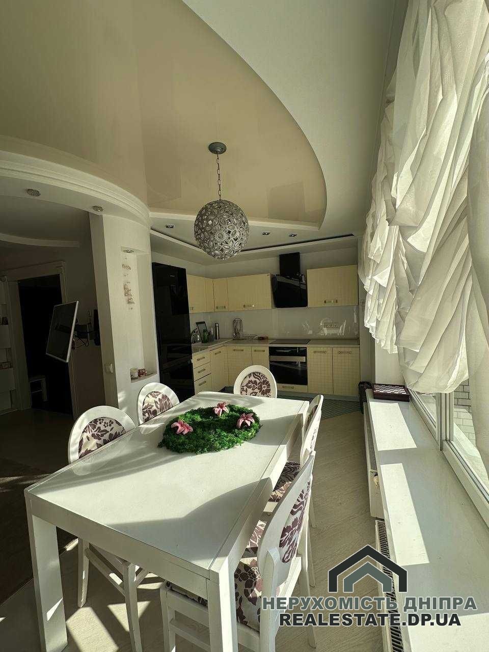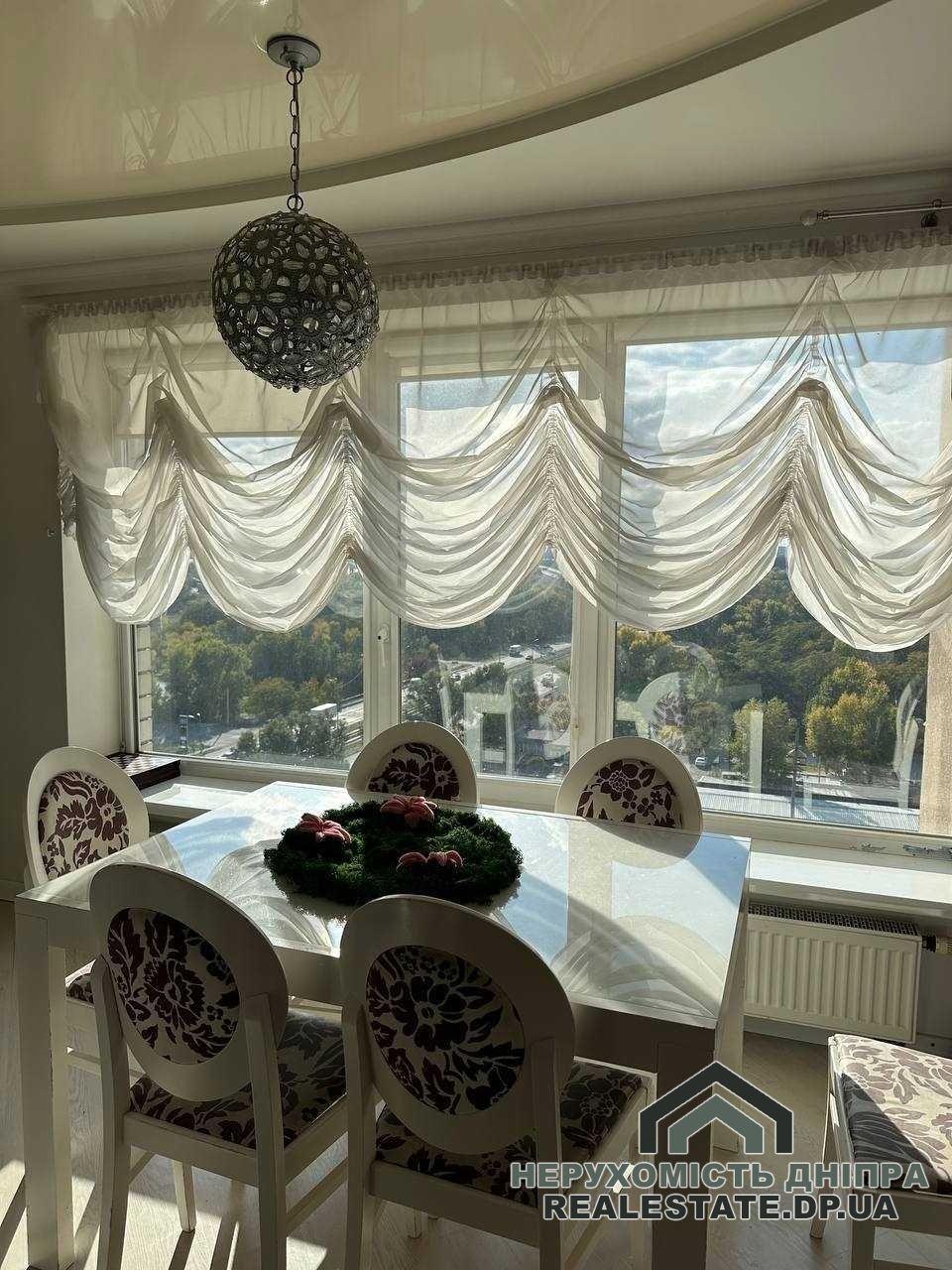 Продаю простору 3-кімнатну квартиру площею 74.50 м² у житловому комплексі на ж/м Фрунзенський. Квартира обладнана сучасними меблями, технікою та має якісний ремонт. З вікон відкривається мальовничий вигляд на річку Дніпро та Кайдацький міст.