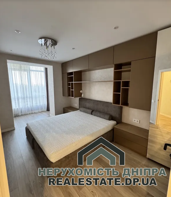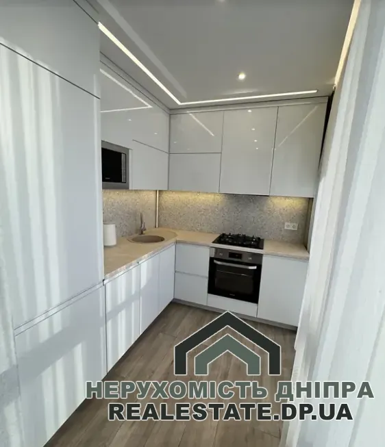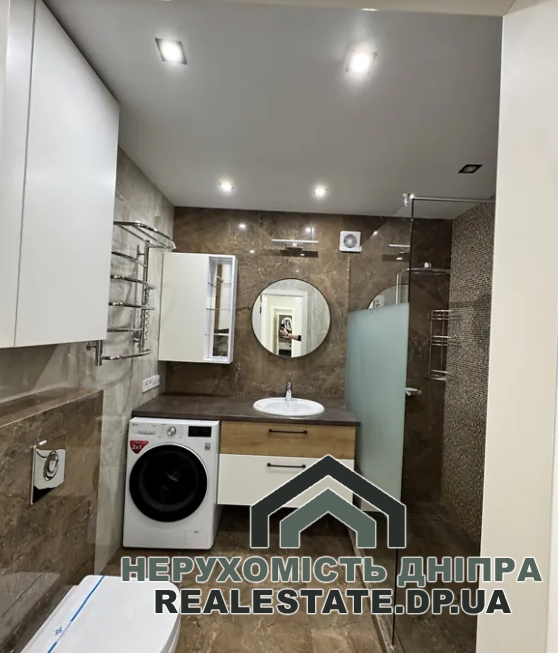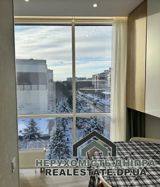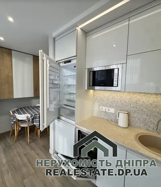 Житлова площа повністю мебльована та оснащена сучасною технікою: три спліт-системи, вбудований холодильник, посудомийна машина, мікрохвильова піч, духова шафа, газова плита, а також прально-сушильна машина 2-в-1.