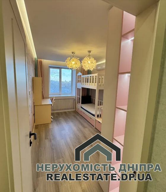 Особливо варто відзначити дитячу кімнату з двоповерховим дерев'яним ліжком-будиночком, просторою шафою і функціональним робочим місцем. Спальня обладнана лоджією та туалетним столиком для зручності. Є окрема гардеробна з вбудованими шафами та іншим обладнанням.