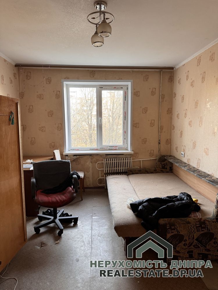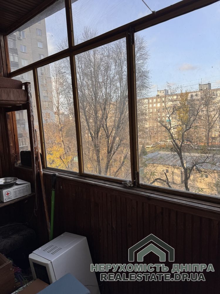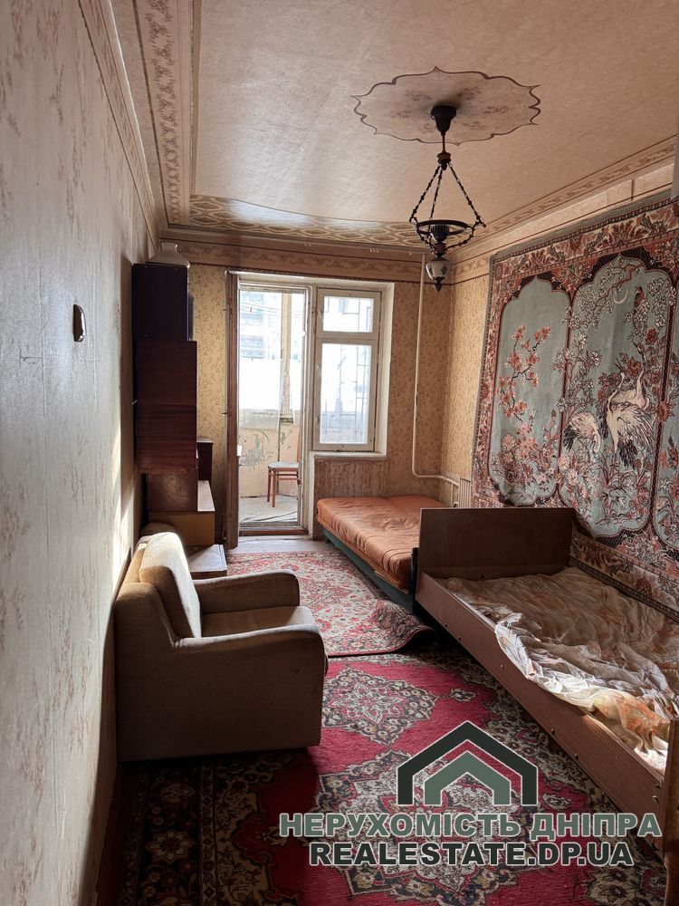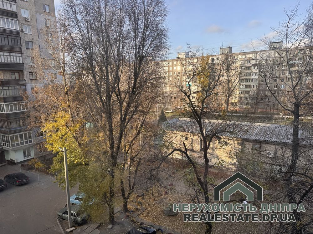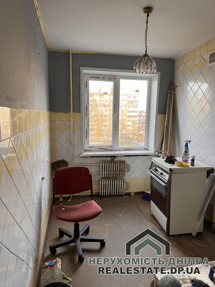 Площа 70 м², кухня – 15 м². Розташована на 5-му поверсі дев'ятиповерхового будинку, у центральній частині під'їзду. Стан житловий, потрібно оновлення. Радянський ремонт.