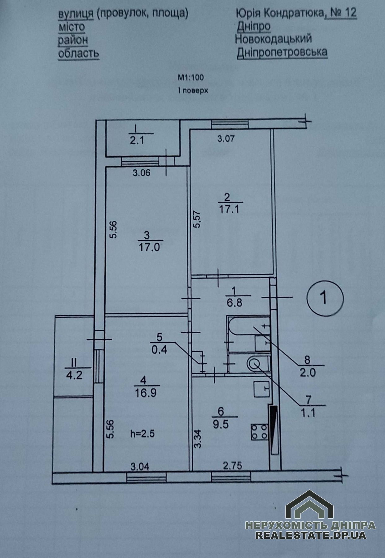 Продається трикімнатна квартира в районі Покровський за вигідною ціною. Загальна площа становить 77,1 м², житлова – 51 м², кухня – 9,5 м². Розташована на високому першому поверсі багатоповерхового будинку (12 поверхів) за адресою вул. Юрія Кондратюка, 12. Квартира без ремонту, двостороння, всі кімнати ізольовані.