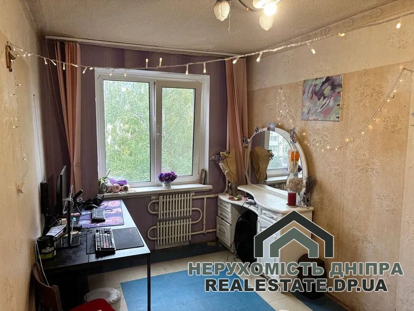 Розміщена на 5-му поверсі дев'ятиповерхового будинку, має вигідне планування з вікнами на дві сторони.