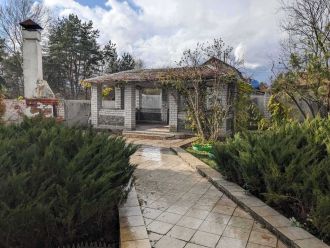 - Брукована зона із альтанкою (площею 35 м²), піччю та мангалом.