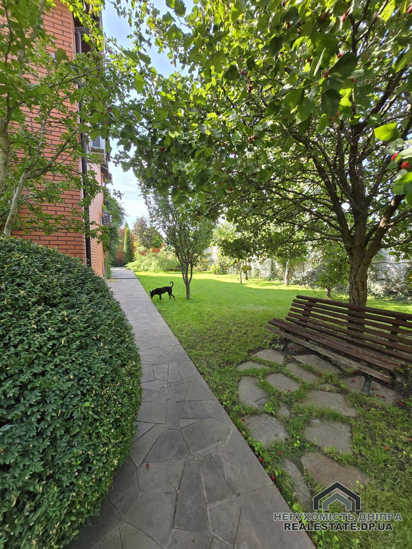 Ділянка землі приватизована, площа 8 соток. Виконаний ландшафтний дизайн із висадженими близько 40 хвойними рослинами, встановлена система автоматичного поливу. На території є зона для барбекю, гараж на два автомобілі з автоматичними воротами, а також встановлені відеоспостереження та сигналізація, підключена до пульта.