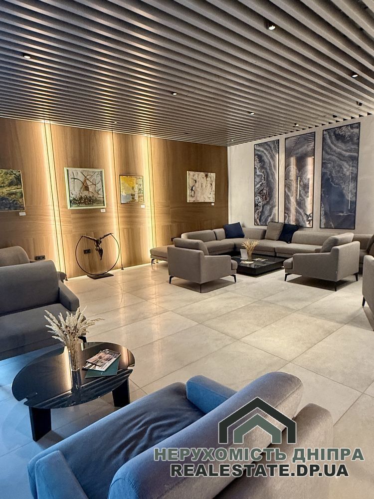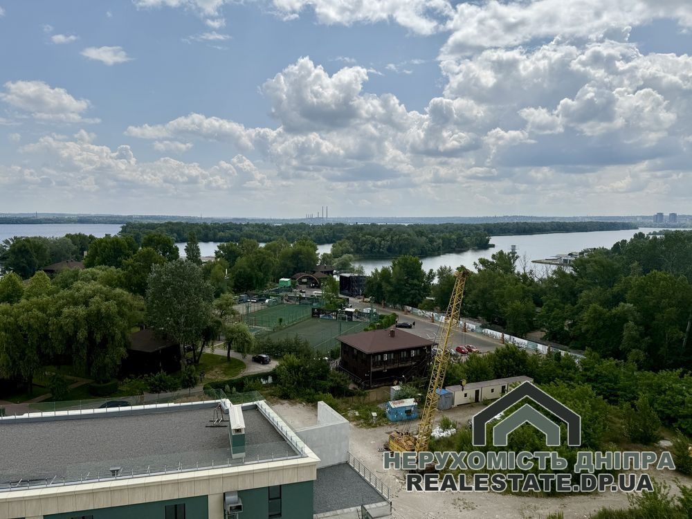 Проєктом передбачено: простору кухню-вітальню, затишну спальню, гардеробну та санвузол. З панорамних вікон відкривається неймовірний вид на річку Дніпро.