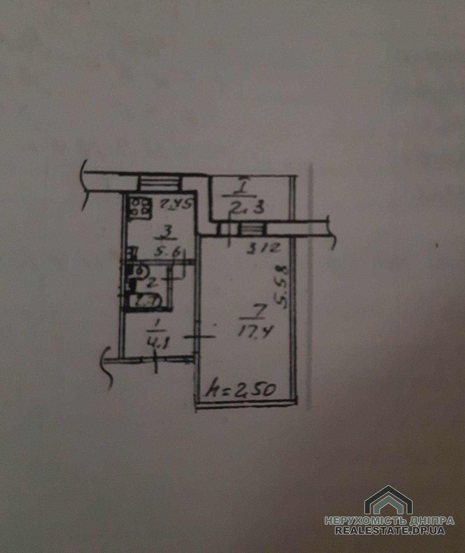 Продам однокімнатну квартиру на 1 поверсі дев’ятиповерхового будинку у Новокодацькому р-ні м. Покровська