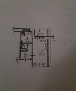 Квартира розташована на першому поверсі дев'ятиповерхового панельного будинку. Площа становить 32 м², кухня – 3 м². Зроблено радянський ремонт.