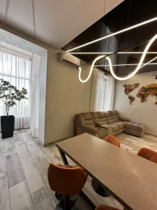 Квартира виконана за унікальним дизайн-проєктом з використанням високоякісних матеріалів. Новий ремонт зроблений для особистого користування власників. Оснащена вбудованою технікою та сантехнікою преміум класу. У квартирі встановлена тепла підлога, і вся обстановка залишається новим власникам.