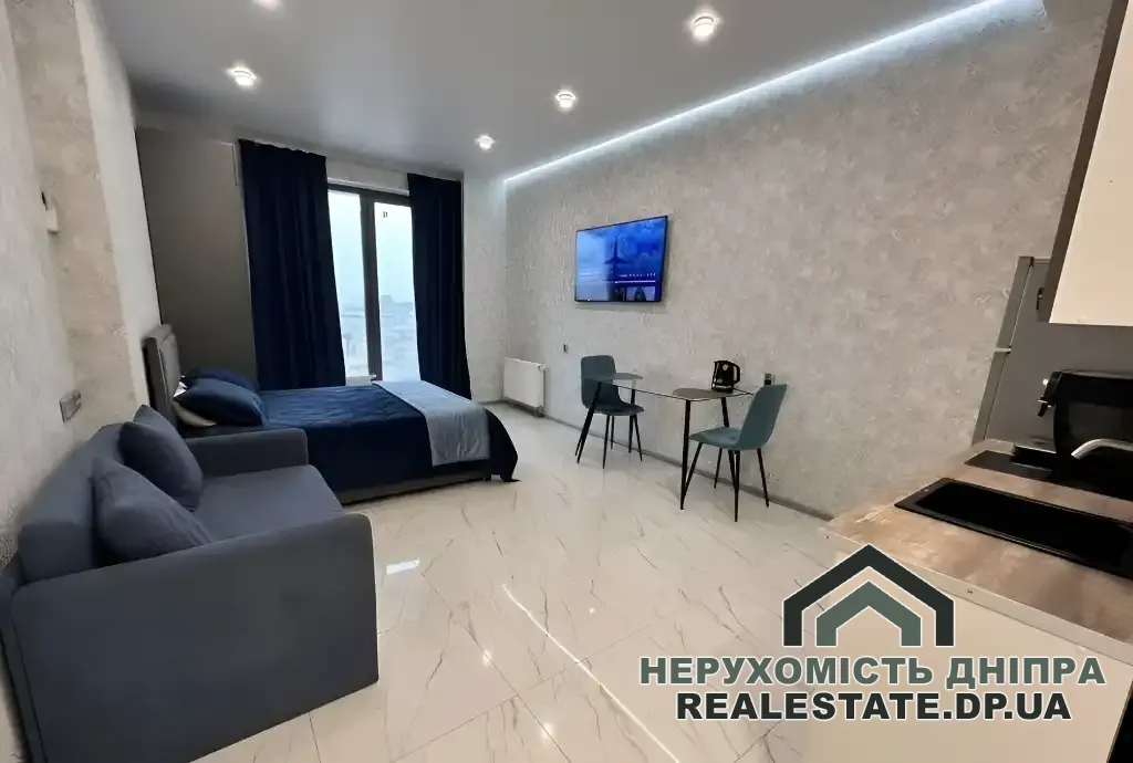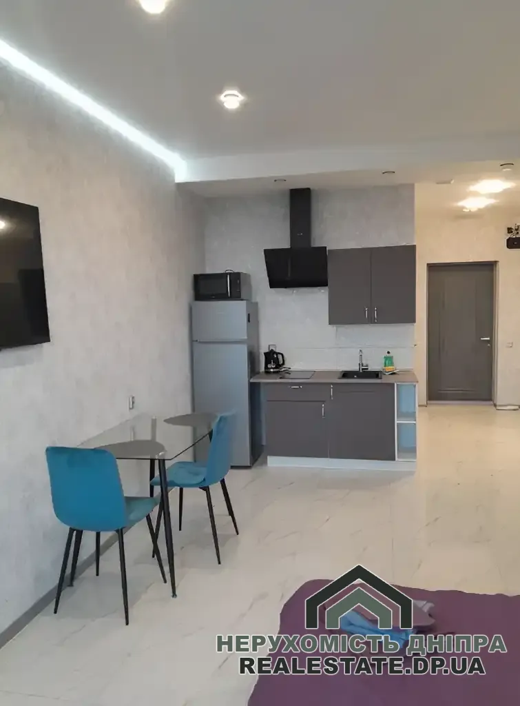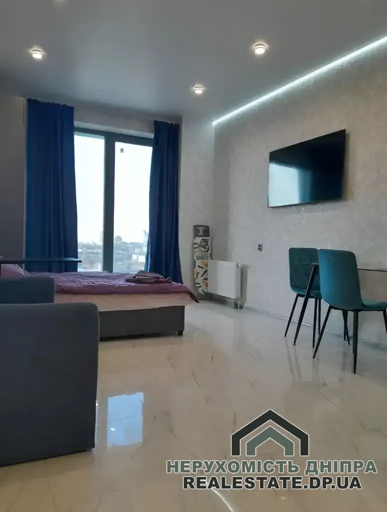 Здам однокімнатну квартиру в ЖК Bartolomeo (Перемога-1), Набережна Перемоги, вул. 9Б. Новобудова, розташована на 27 поверсі з 32. Загальна площа — 31 м², євроремонт.