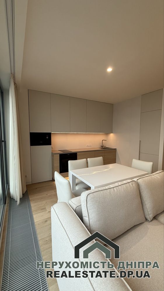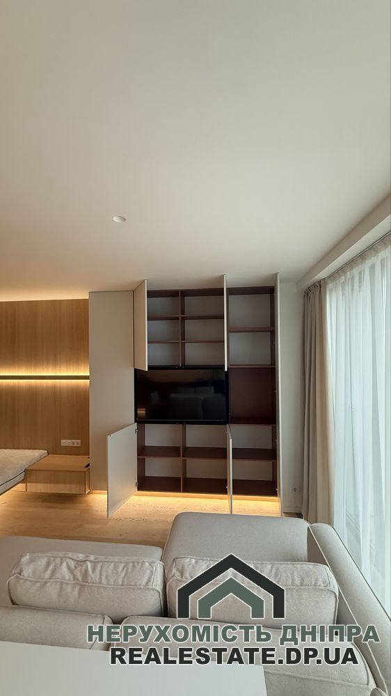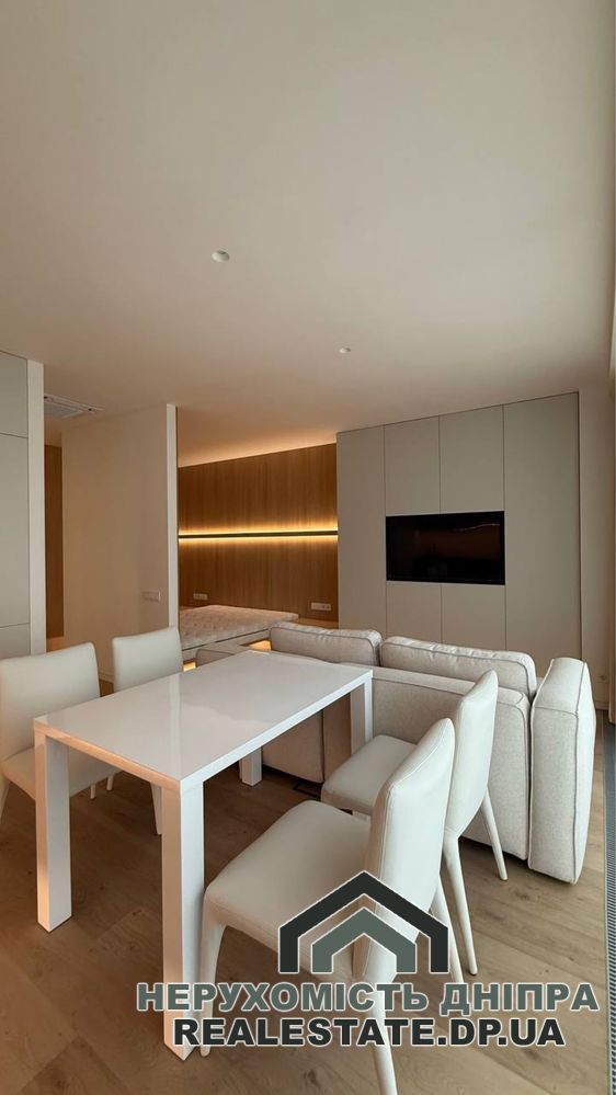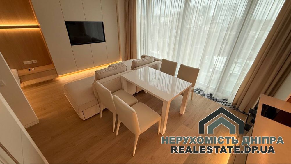 Перше здавання після ремонту. Інтер'єр виконаний у сучасному стилі, повністю укомплектована необхідною технікою: плазмовий телевізор на 50”, пральна та сушильна машина, посудомийна машина, духовка, мікрохвильова піч, кондиціонер, встановлені дизайнерські меблі для максимального комфорту.