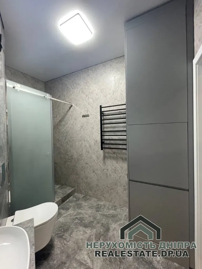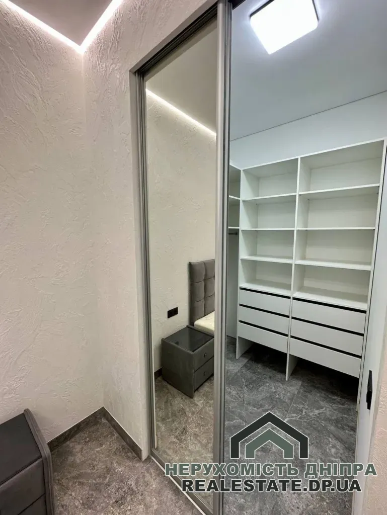 Планування включає окрему спальню, гардеробну з великою місткістю, санвузол із душовою кабіною.