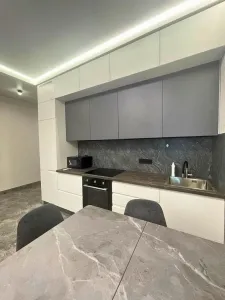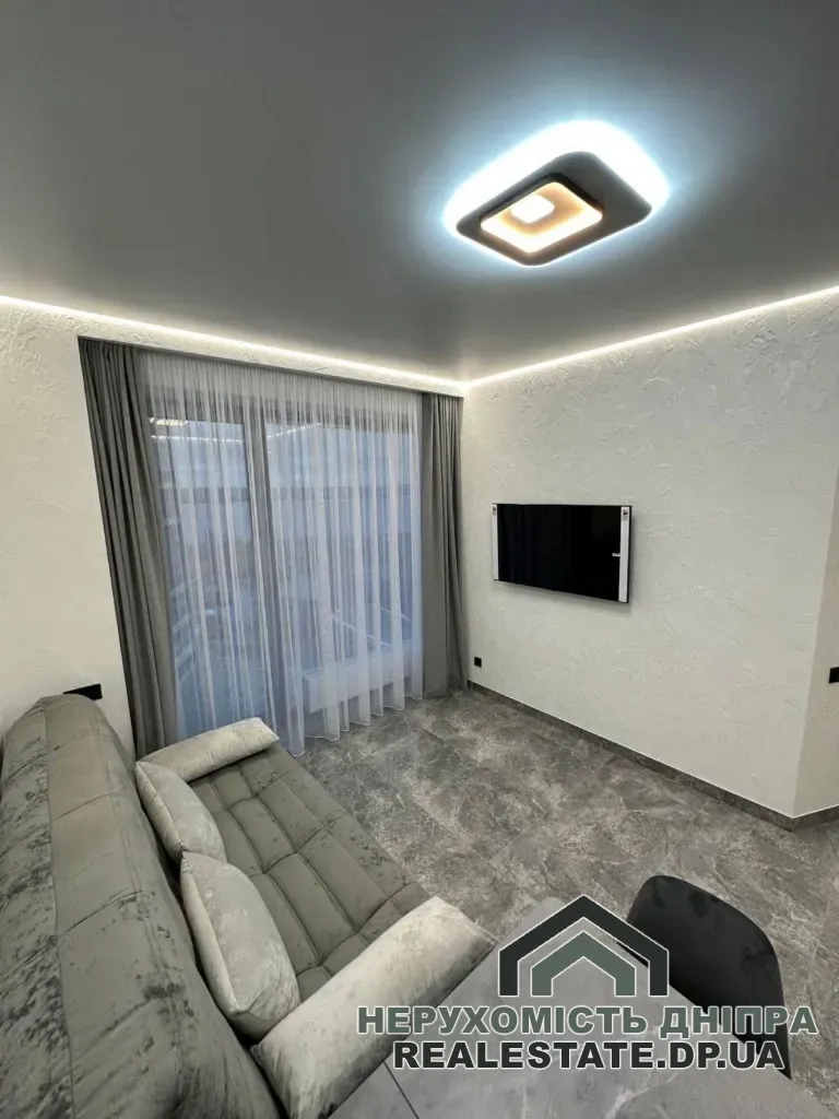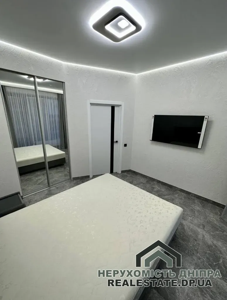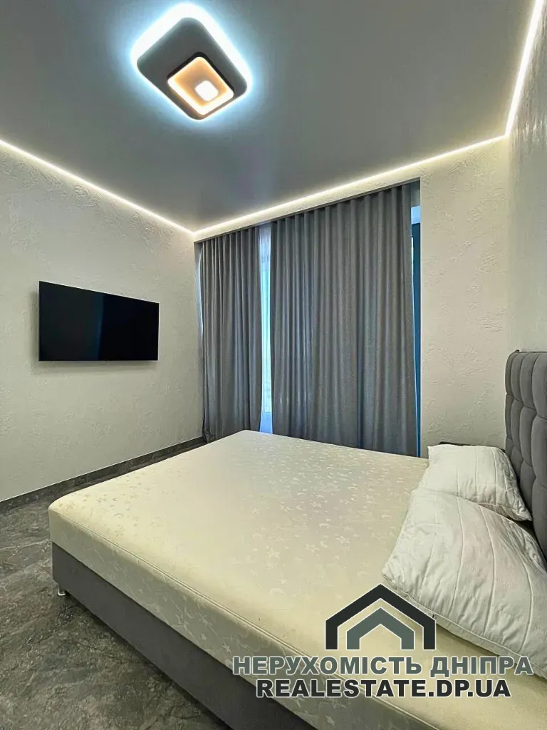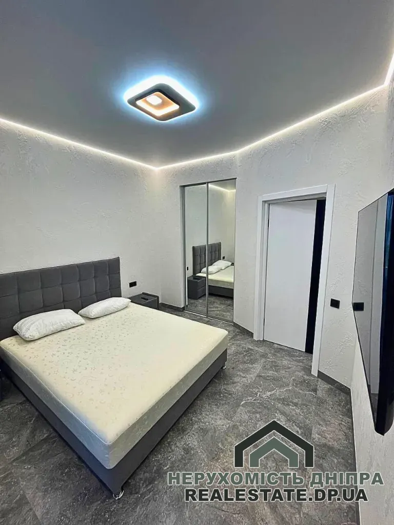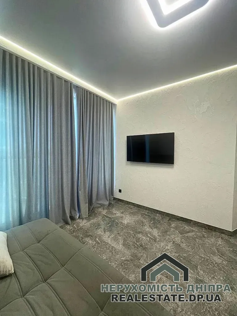 Квартира обладнана телевізором, кондиціонером, холодильником та системою теплих підлог.