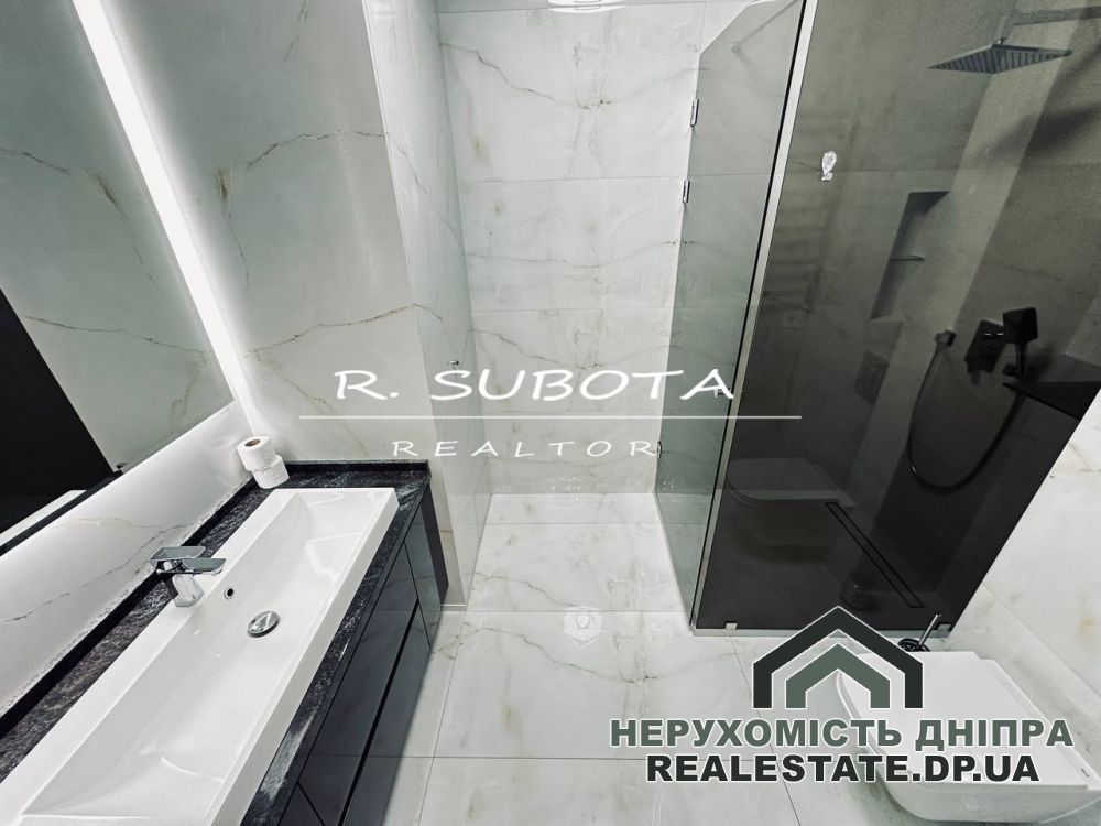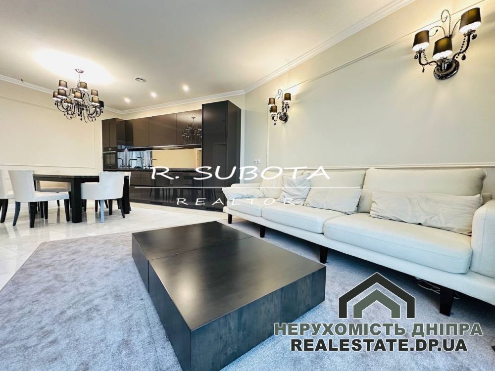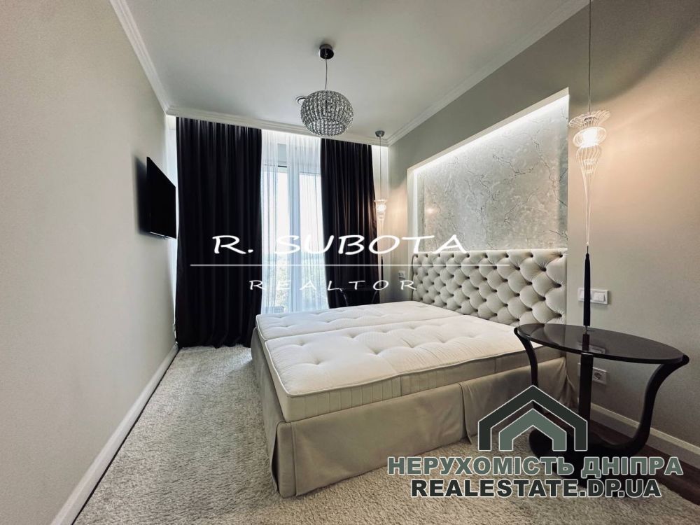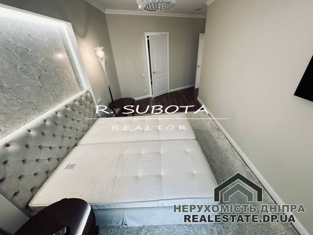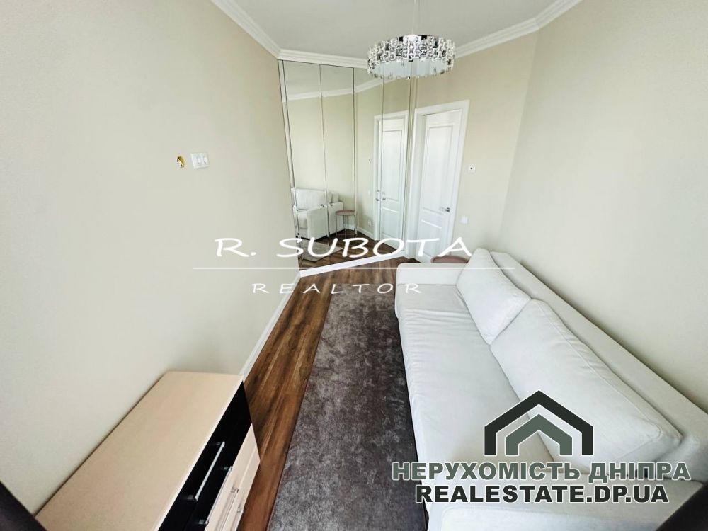 3-кімнатна нова квартира площею 94 м², знаходиться на 8 поверсі з 22. Виконано авторський дизайнерський ремонт.